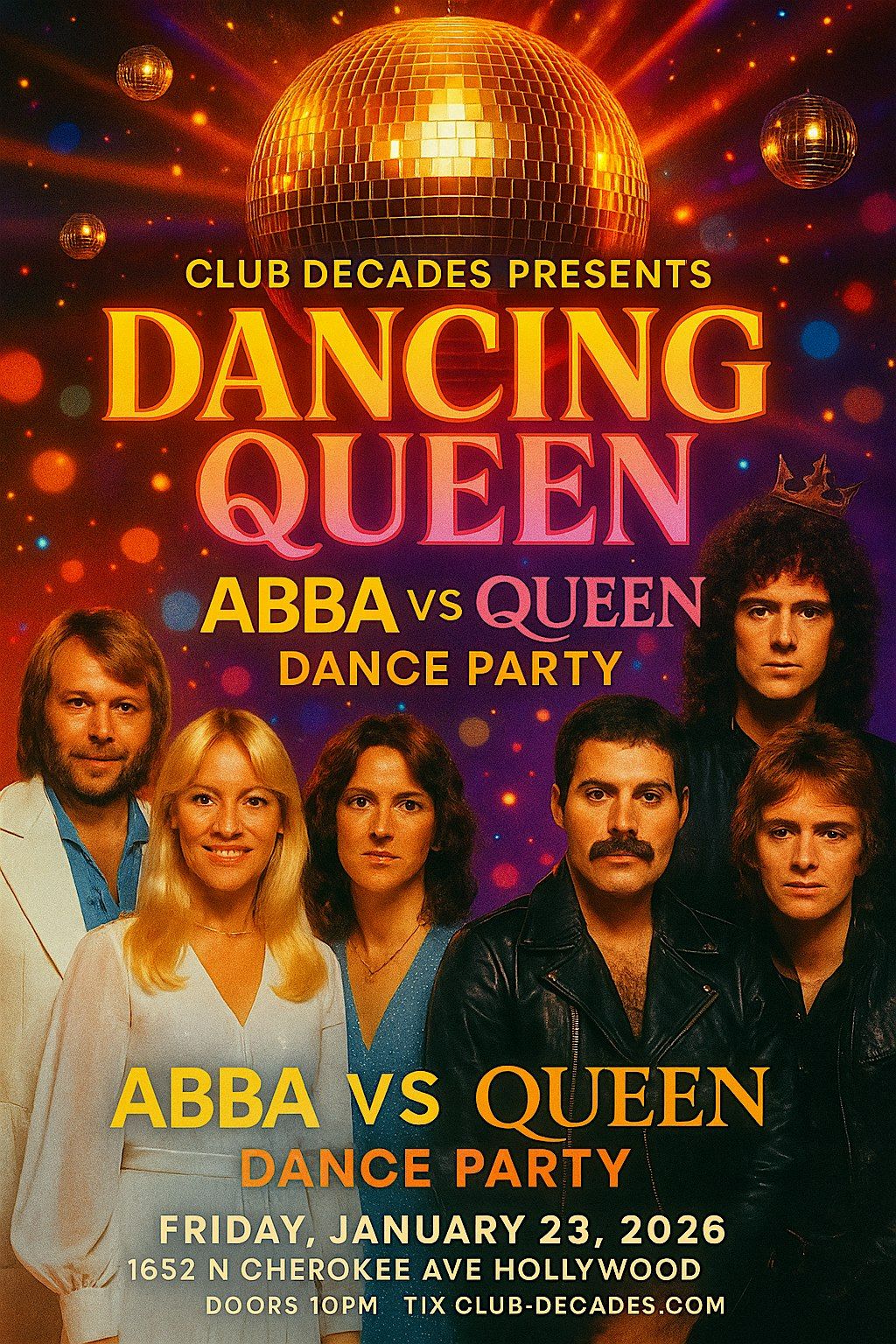 Dance and celebrate the music and legacy of ABBA and QUEEN + the best 70's and adjancent at Hollywood's ultimate weekly dance party.