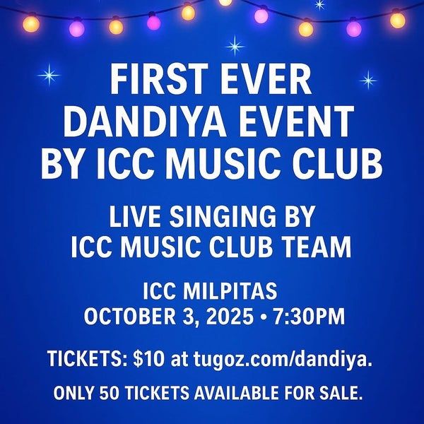 Join us for the inaugural Dandiya event hosted by Dabandd and the ICC Music Club! This intimate gathering is limited to only 50 tickets, ensuring a cozy and engaging atmosphere. Experience live singing performances by the ICC Music Club team, all set against a backdrop of vibrant disco lights. Attendees are encouraged to bring their own dandiya sticks to participate in the traditional dance. Food will be available for purchase on-site. Don't miss out on this unique cultural experience!