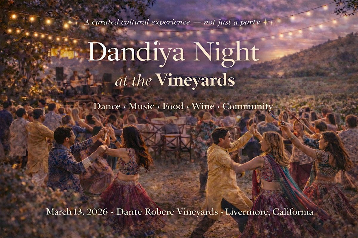 Get ready to groove and twirl at Dandiya at Dante Robere Vineyards! This fun-filled, in-person event is perfect for everyone who loves vibrant beats and colorful dance moves. Join us for a lively evening surrounded by beautiful vineyards, great vibes, and awesome company. Don’t miss out on an unforgettable night of music, dance, and celebration under the open sky!