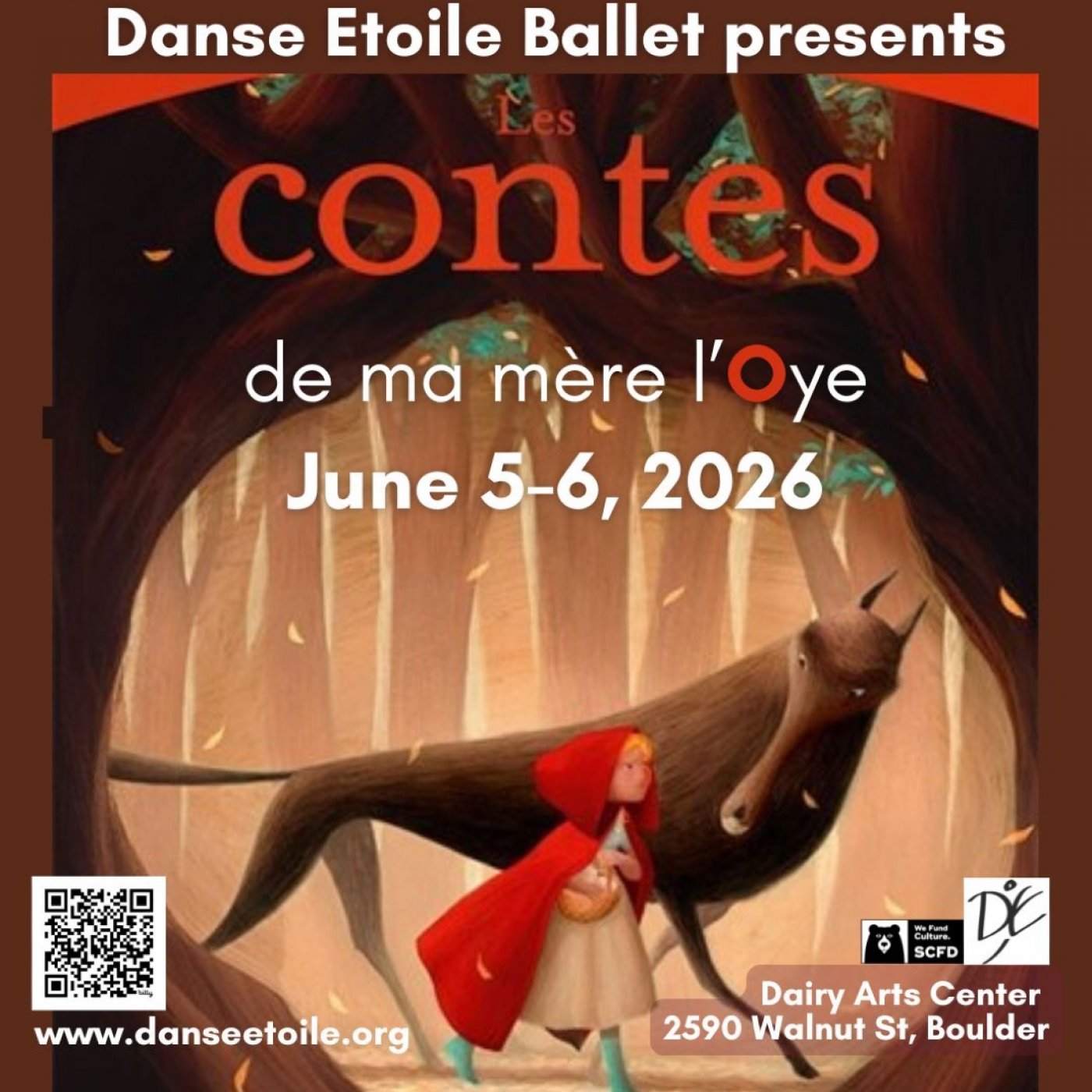 Danse Etoile Ballet’s season finale is Les Contes de ma mère l’Oye, Tales of Mother Goose, as originally told by Charles Perrault. These classic French fairy tales, including “Sleeping Beauty,” “Little Red Riding Hood,” “Cinderella,” “Puss in Boots,” and “Tom Thumb,” evoke the dreamlike world of childhood through the captivating choreography of Marie-Jose Payannet and a blend of classic and contemporary music. We invite you to encounter these fairytales woven in the enchantment of imaginary landscapes.