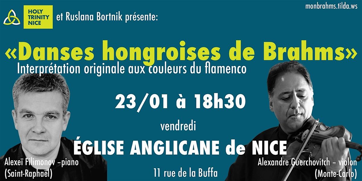 Danses hongroises de J.Brahms. Interprétation originale aux couleurs du flamenco Espagne et Hongrie… Qu’est-ce qui unit les cultures musicales de ces deux pays ? Selon le pianiste Alexey Filimonov, ce sont leurs racines gitanes communes. Pour étayer sa théorie, le musicien a choisi une œuvre du compositeur Johannes Brahms, ses «Danses hongroises», l’une des pièces classiques les plus populaires. Alexey y a souligné ces similitudes en superposant les mélodies hongroises de Johannes Brahms, interprétées par le violoniste Alexander Gershovich, aux rythmes du flamenco espagnol. Participants: Alexandre Guerchovitch Violon Alexandre Guerchovitch descend d’une famille de plusieurs générations de musiciens. Il est né à Minsk, en Biélorussie. Il commence ses études de violon à l’âge de 5 ans à l’École Centrale de Musique de Minsk et donne son premier récital de violon à l’âge de 12 ans. Dès 14 ans, il se produit avec l’Orchestre National de Biélorussie. En 1983, il obtient le Premier Prix au Concours national biélorusse. Il continue ses études au Conservatoire Supérieur Tchaïkovski de Moscou comme violoniste et altiste de 1984 à 1989. Il poursuit son ascension en tant que soliste à la Société Philharmonique de Moscou et joue sur les plus grandes scènes du monde : Tokyo, Londres, Bruxelles, Helsinki, Dublin, Stockholm… De 1988 à 1991, il se produit comme soliste de l’Orchestre de Chambre de Moscou sous la direction de V. Tretiakov. En 1991, il quitte la Russie et s’installe en France. Il poursuit sa carrière artistique au sein de l’Orchestre Philharmonique de Monte-Carlo. Alexei Filimonov Pianiste, compositeur Né en Russie, Alexei apprend le piano dès son plus jeune âge (6 ans), tout d’abord en formation classique, puis en jazz. Diplômé de l’Académie de musique de Moscou et du Conservatoire de Saint-Pétersbourg, il a reçu du gouvernement français le « Passeport-Talent » qui lui permet de travailler dans le champ artistique et culturel. Alexei a été invité plusieurs années de suite au prestigieux Montreux Jazz Piano Solo (Suisse) et a reçu le prix du Concours International de soliste jazz de Monaco. Alexei est également lauréat du Jazz Hoeillart Contest (Belgique). Audio: https://soundcloud.com/filimonov-74/my-spanish-brahmas-by-a web-site: https://monbrahms.tilda.ws/