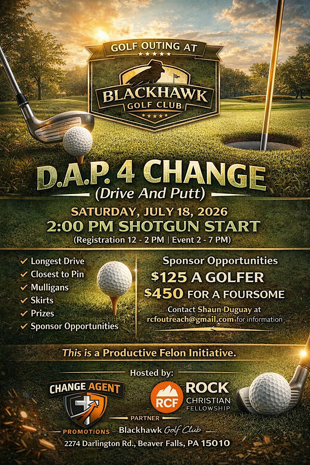 The D.A.P. Golf Outing — Drive And Putt 4 CHANGE — is a faith-driven event bringing together golf, community, and purpose.