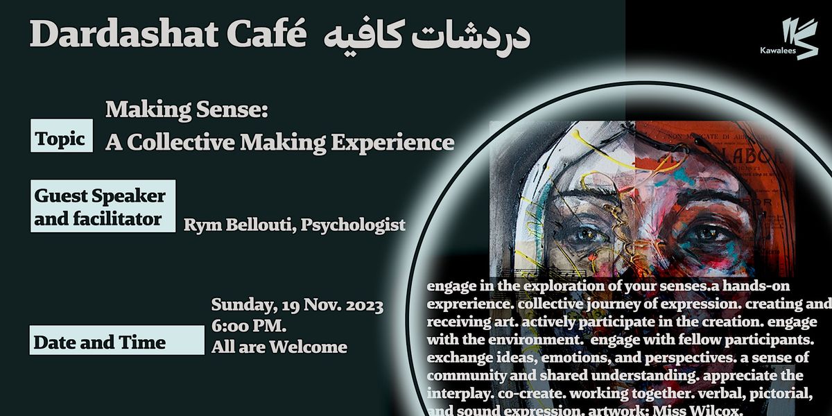 "Making Sense: A Collective Making Experience with Rym Bellouti" is an immersive event that engages in the exploration of your senses within a cultural space. This hands-on experience is curated to foster a collective journey of expression trough art, led by the psychologist Rym Bellouti. attendees are encouraged to actively participate in the creation.