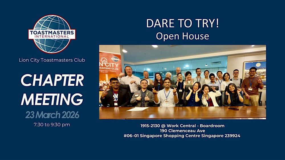 At Lion City Toastmasters Club, this March, we Dare to TRY!