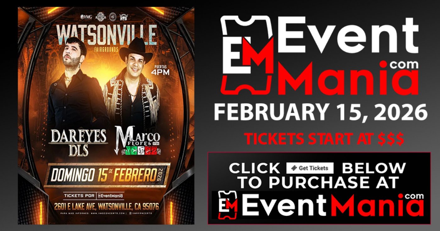 Compra tus boletos aqui: https://eventmania.com/events/dareyes-de-la-sierra-y-marco-florez-y-la-jerez-watsonville-ca-watsonville-ca-2026-02-15/IkMz/seat
