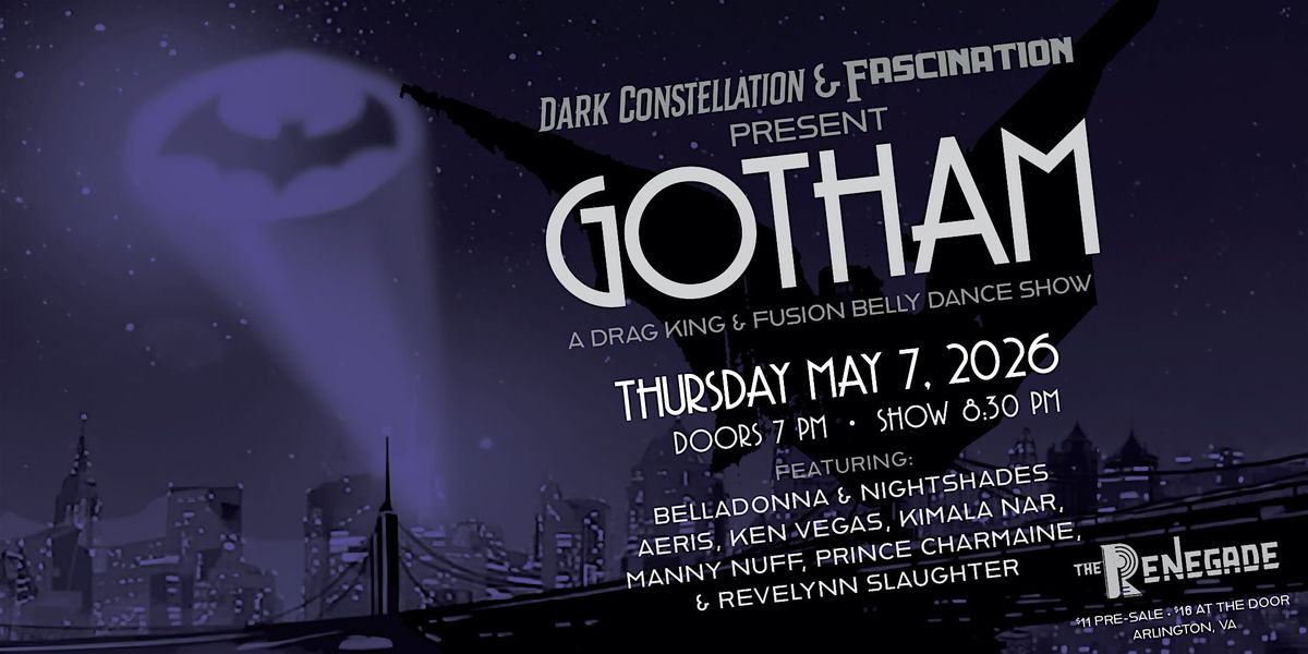 Step into the shadows of Gotham City for a night of dark glamour, seductive villains, and heroic mischief. Fascination: GOTHAM is a drag king and fusion belly dance spectacular celebrating the iconic world of Gotham and its unforgettable characters.