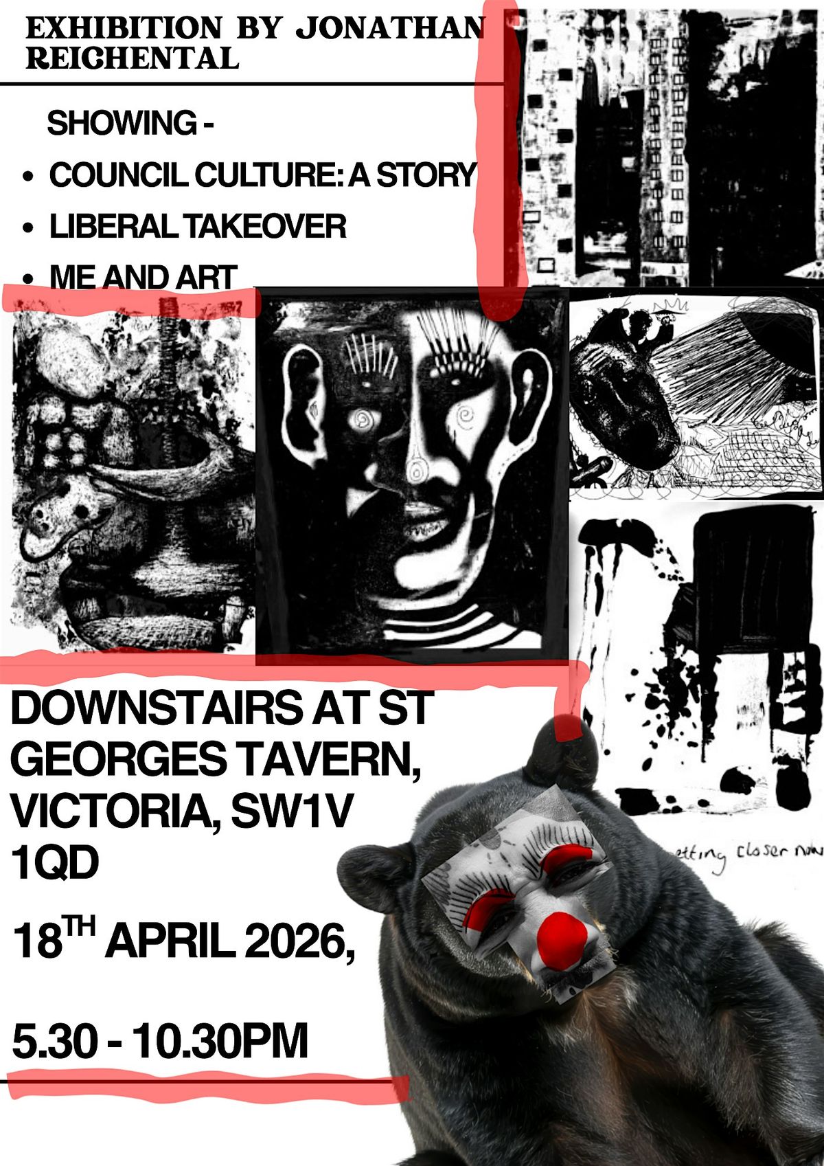 Jonathan Reichental is a 29-year-old contemporary artist whose work explores human struggle and psychological intensity. Rooted in neo-expressionism, his practice features distorted figures, raw mark-making, and stark, high-contrast monochrome compositions.