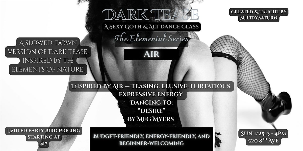 Each session focuses on a different elemental energy, using short, accessible choreography and themes drawn from past Dark Tease routines.