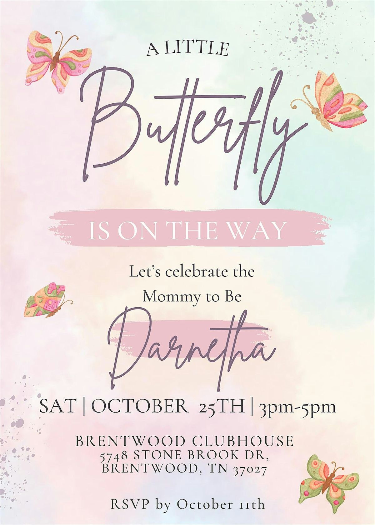Come shower Darnetha with love and blessings as she prepares to welcome her little Butterfly. Let's sprinkle her with gifts and good wishes! Instead of a card, please bring a baby book to help start her first little library. A registry has been made to keep things easy—so please stick to the list.