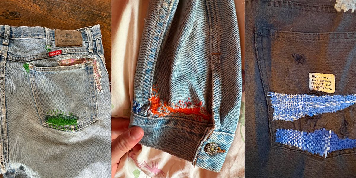 About the instructor, Marlee Blue: Marlee has been mending clothes for a number of years. They are passionate about sustainability and keeping things out of the landfill. They work in landscaping and so their clothes are in constant need of mending, which they've learned to do skillfully and efficiently.