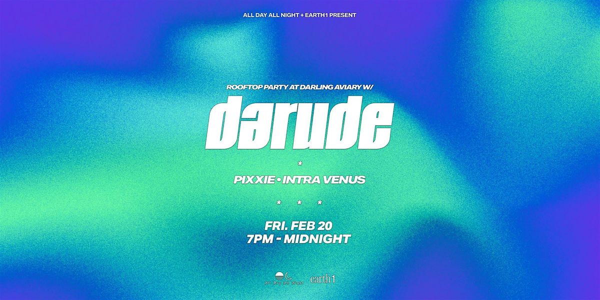 All Day All Night + Earth1 present the one and only, DARUDE, at the Darling Aviary Rooftop in Sacramento on Friday, 2/20. Yes.. THAT DARUDE. Sandstorm Darude.