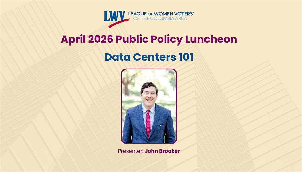 John Brooker, Senior Vice President of Policy and Government Relations for the Conservation Voters of South Carolina, will present a program on data centers.