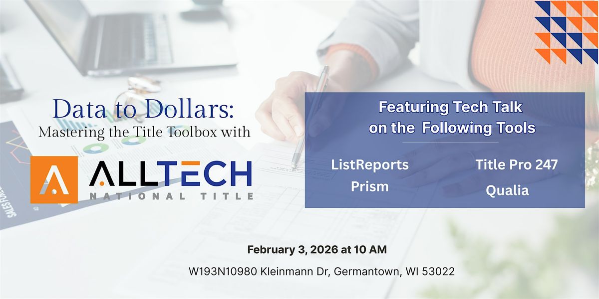 Join Alltech National Title for an exclusive session designed to turn complex real estate data into a powerful engine for your business growth. This presentation will deep-dive into the premium tech stack available to you, demonstrating how to leverage four industry-leading platforms to streamline your workflow, dominate your local market, and provide a superior client experience.
