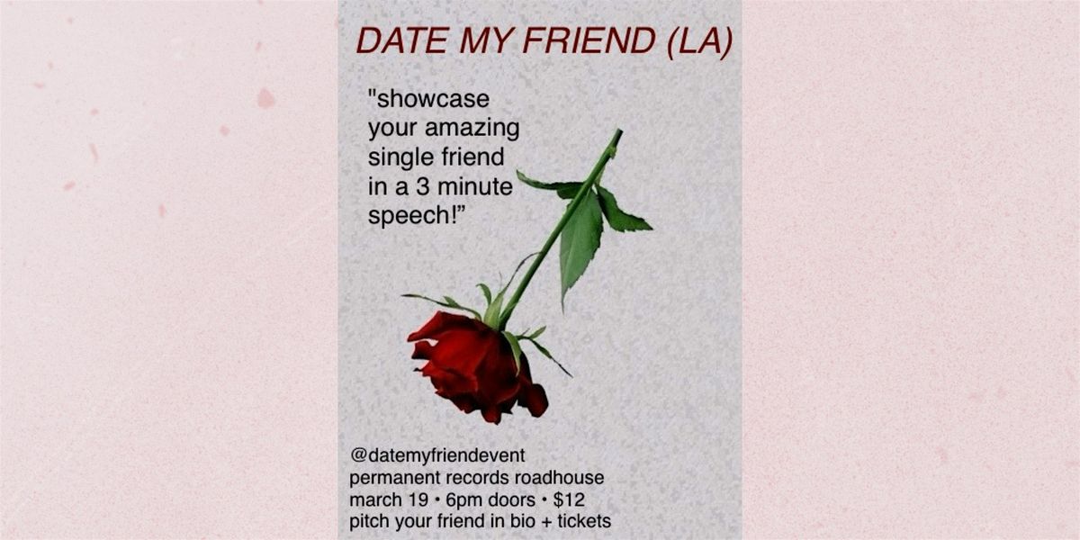 Back by popular demand... Date My Friend (LA)! This event is 21+ only. We will check IDs at the door. There are no refunds if you are turned away.