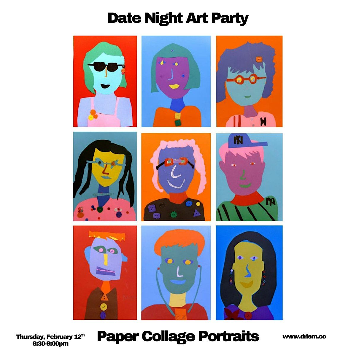 Date Night Art Party: Make a Paper Portrait Collage of Your Date is a fun, low-pressure creative night designed for couples to connect, laugh, and make something memorable together. You’ll create a playful paper collage portrait of your date using colors, textures, and shapes that capture their vibe.
