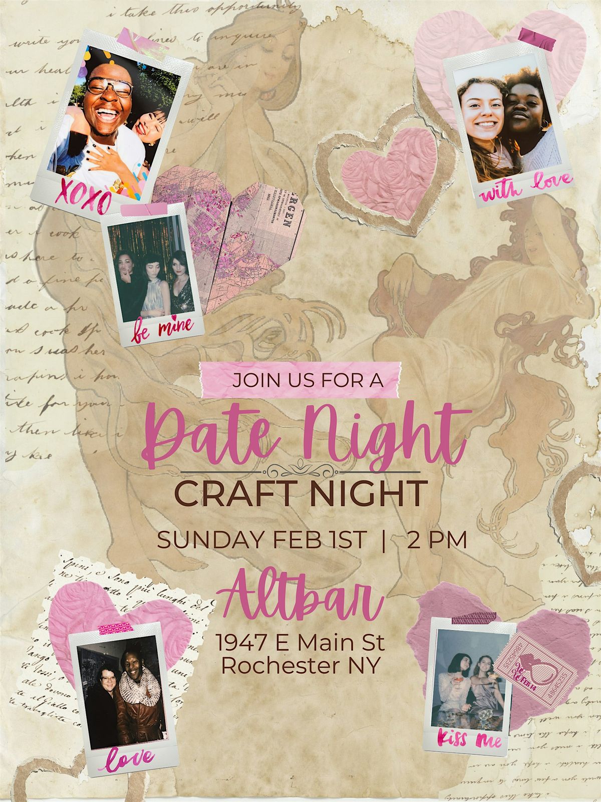Join us for a special, valentine themed craft & sip at AltBar! Bring your date, your bestie, or come alone and make a new friend!