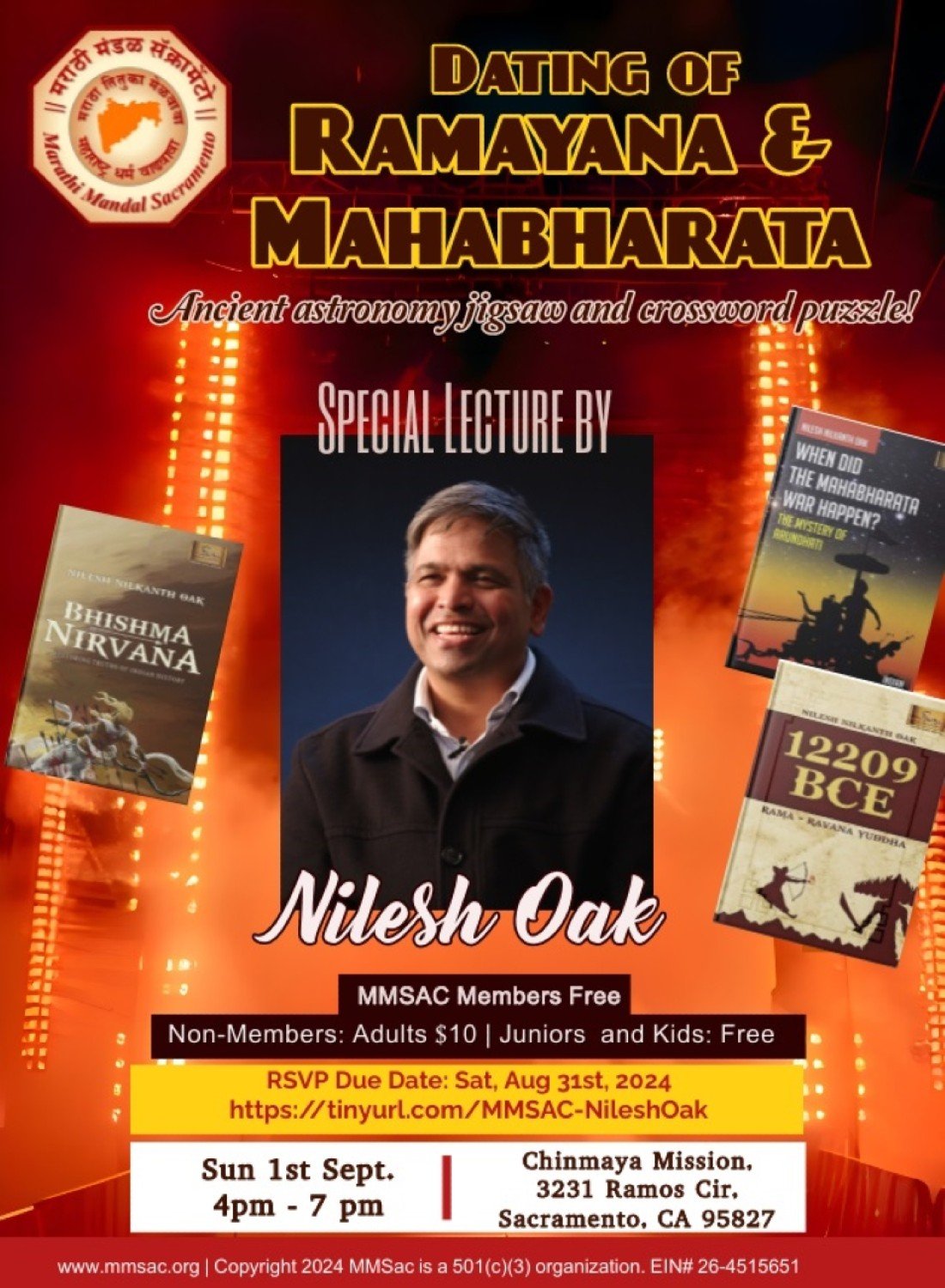Nilesh Oak will have a special lecture on Dating of Ramayana and Mahabharata.
