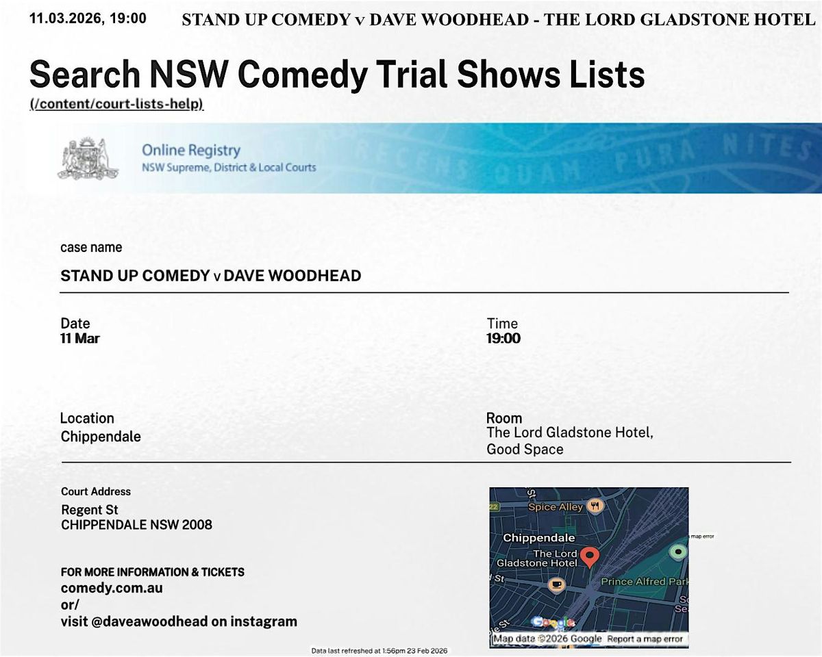 DAVE WOODHEAD - TRIAL SHOW [THE LORD GLADSTONE HOTEL. 11 MARCH. 7PM.]