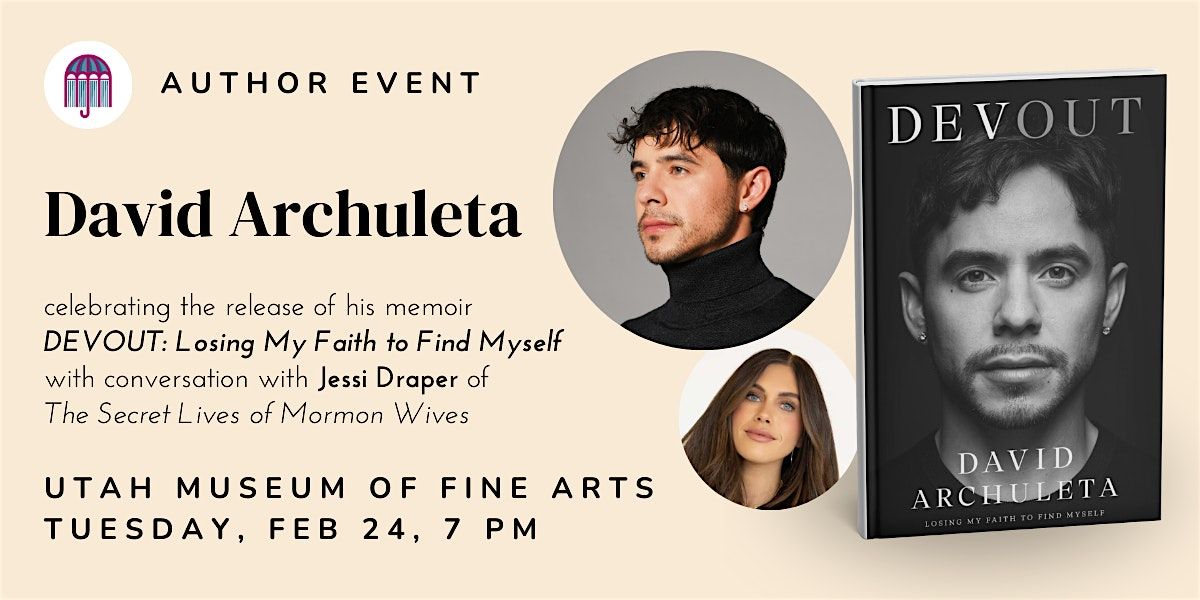 David Archuleta's first-ever performance at Utah Pride 2025 drew in a crowd of hundreds--and now he's coming back to Utah to talk about his journey and the release of his book, Devout: Losing My Faith to Find Myself, alongside Jessi Draper of The Secret Lives of Mormon Wives. David will be signing books and taking photos with attendees after the talk. Join Under the Umbrella, Salt Lake City's only all-queer bookstore, for this celebration of Utahns' queer joy at Utah Museum of Fine Arts!