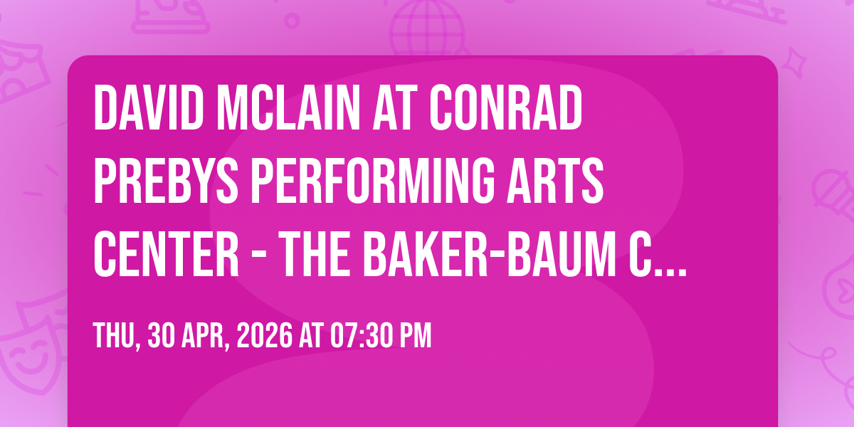 ✨ Enter a world of endless possibilities at David McLain at Conrad Prebys Performing Arts Center - The Baker-Baum Concert Hall, where every moment tells a story! 🏛️ The stunning Conrad Prebys Performing Arts Center - The Baker-Baum Concert Hall in vibrant La Jolla, CA transforms into a realm of wonder on April 30th, 2026 at 07:30 PM. 🌟 They have crafted an experience that goes beyond the ordinary, combining elements of surprise, delight, and pure entertainment. Every detail has been thoughtfully considered to ensure your journey with us is nothing short of extraordinary. 🎯 Join fellow adventure seekers and memory makers in this celebration of imagination and innovation. 🎊 Reserve your spot today and be part of something truly special!