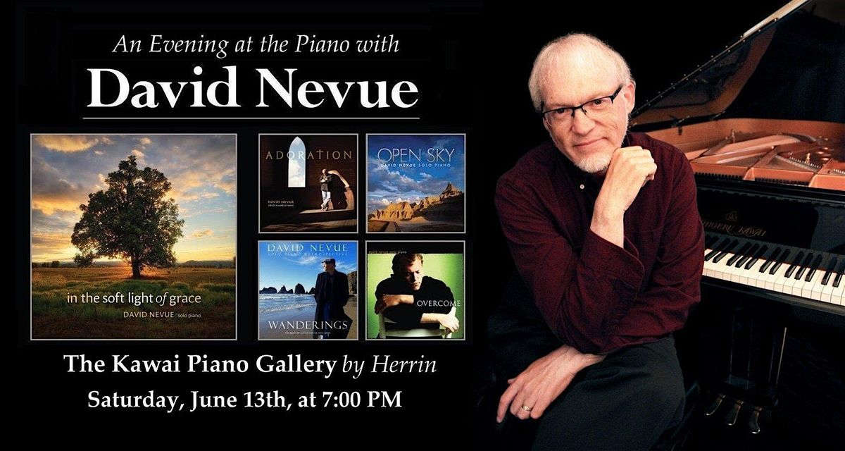 Join pianist/composer David Nevue on Saturday, June 13th, at 7:00 p.m. for a wonderful evening of soothing piano music at the Kawai Piano Gallery (by Herrin) in Bluffton, SC! An award-winning, internationally recognized recording artist, Nevue’s piano music can be heard on Spotify, Apple Music, Pandora, YouTube, and Amazon Alexa - virtually anywhere you listen to music!