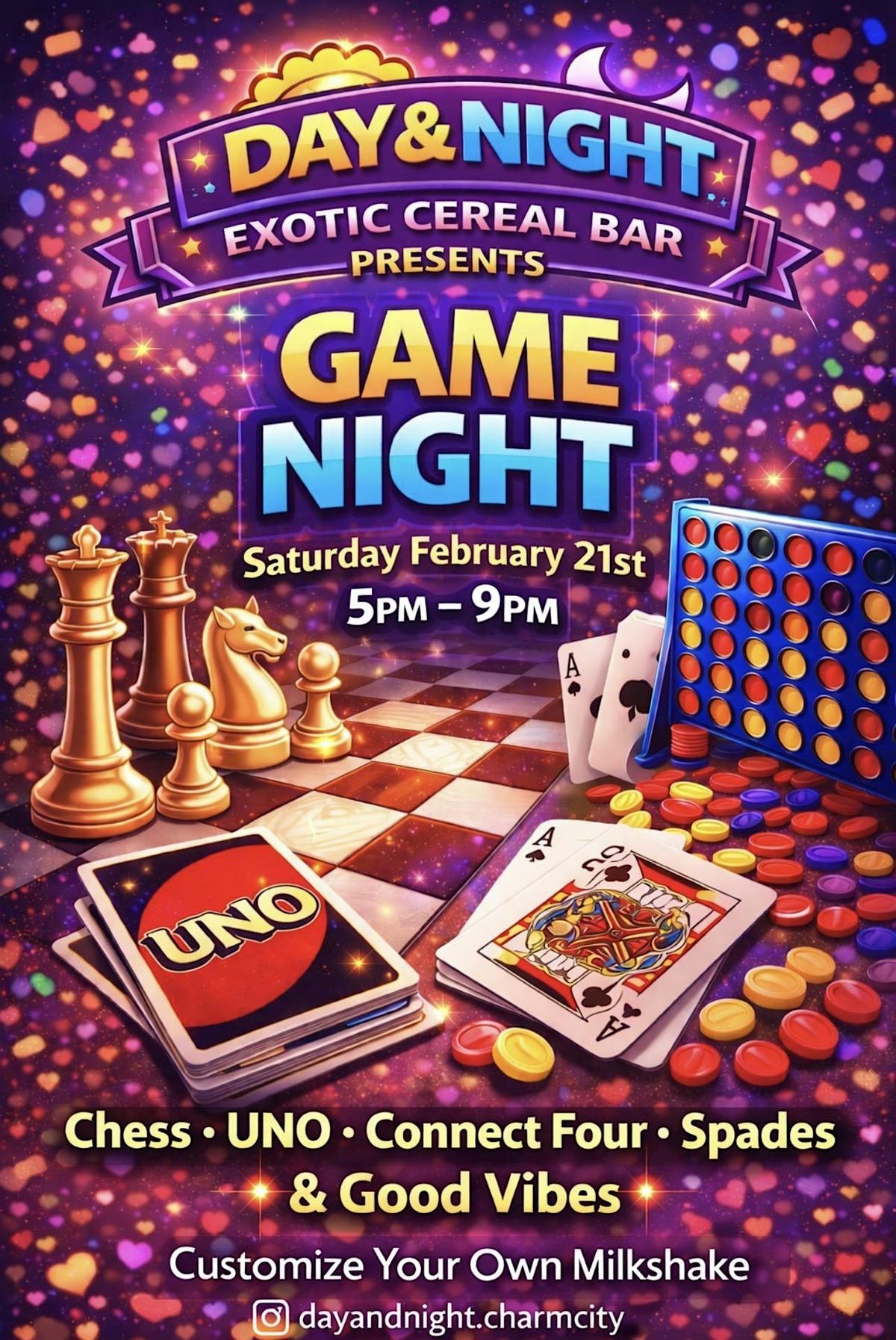 Join us for our very own Game Night! Catch a Vibe & Drink Your own Customized Milkshake! Play Chess, Uno, Spades & Connect Four!