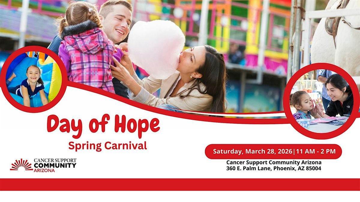 Get ready for a fun-filled day in the sunshine with games, food, and great vibes! This in-person event is the perfect way to celebrate spring with friends and family. Whether you're here for the thrilling rides, tasty treats, or just to soak up the cheerful atmosphere, there's something for everyone. Don't miss out on the laughter, music, and memories waiting to be made at the Day of Hope Spring Carnival!