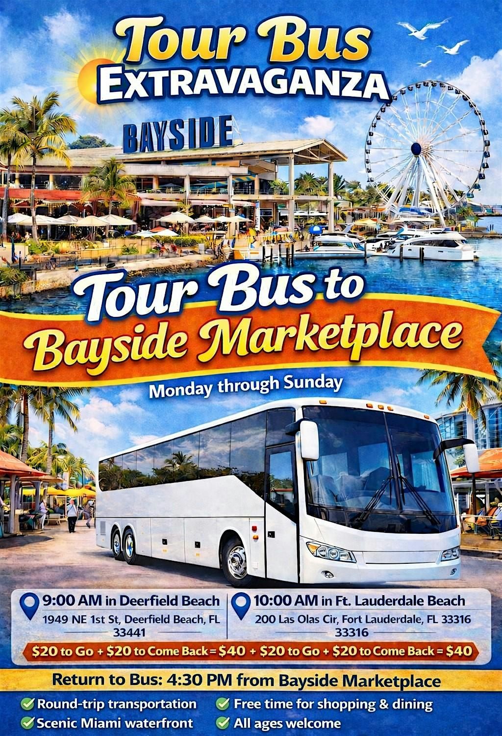🚍 Round-trip transportation from Fort Lauderdale to Bayside Marketplace