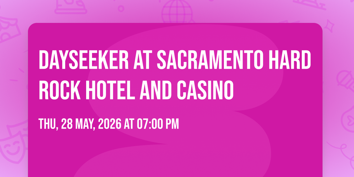 🎉 Welcome to Dayseeker at Sacramento Hard Rock Hotel and Casino, where dreams come alive and possibilities are endless! 🏛️ Join us at Sacramento Hard Rock Hotel and Casino in the heart of Wheatland, CA for an event that defies expectations. 📅 On May 28th, 2026 at 07:00 PM, be part of something truly extraordinary as we bring together innovation, entertainment, and pure magic. ✨ Every aspect has been carefully designed to ensure an unforgettable experience for all our guests. Whether you're seeking adventure, inspiration, or simply a break from the ordinary, this event promises to deliver beyond your wildest dreams. 🎊 Prepare for a journey into the extraordinary!