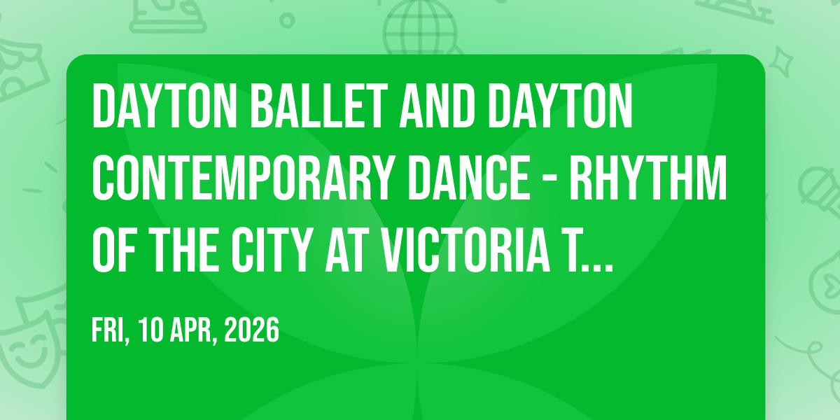 β¨ Embark on an extraordinary journey at Dayton Ballet and Dayton Contemporary Dance - Rhythm Of The City at Victoria Theatre-OH, where every moment promises to be unforgettable! π Imagine of transforming Victoria Theatre-OH in the heart of Dayton, OH into a realm of endless possibilities. π Join us on April 10th, 2026 at 07:30 PM for an experience that will challenge your imagination and exceed your expectations. π― This carefully curated event combines the finest elements of entertainment, innovation, and community spirit. Whether you're an adventure seeker, culture enthusiast, or someone looking for unique experiences, this event offers something special for everyone. π Don't miss this chance to be part of something extraordinary!
