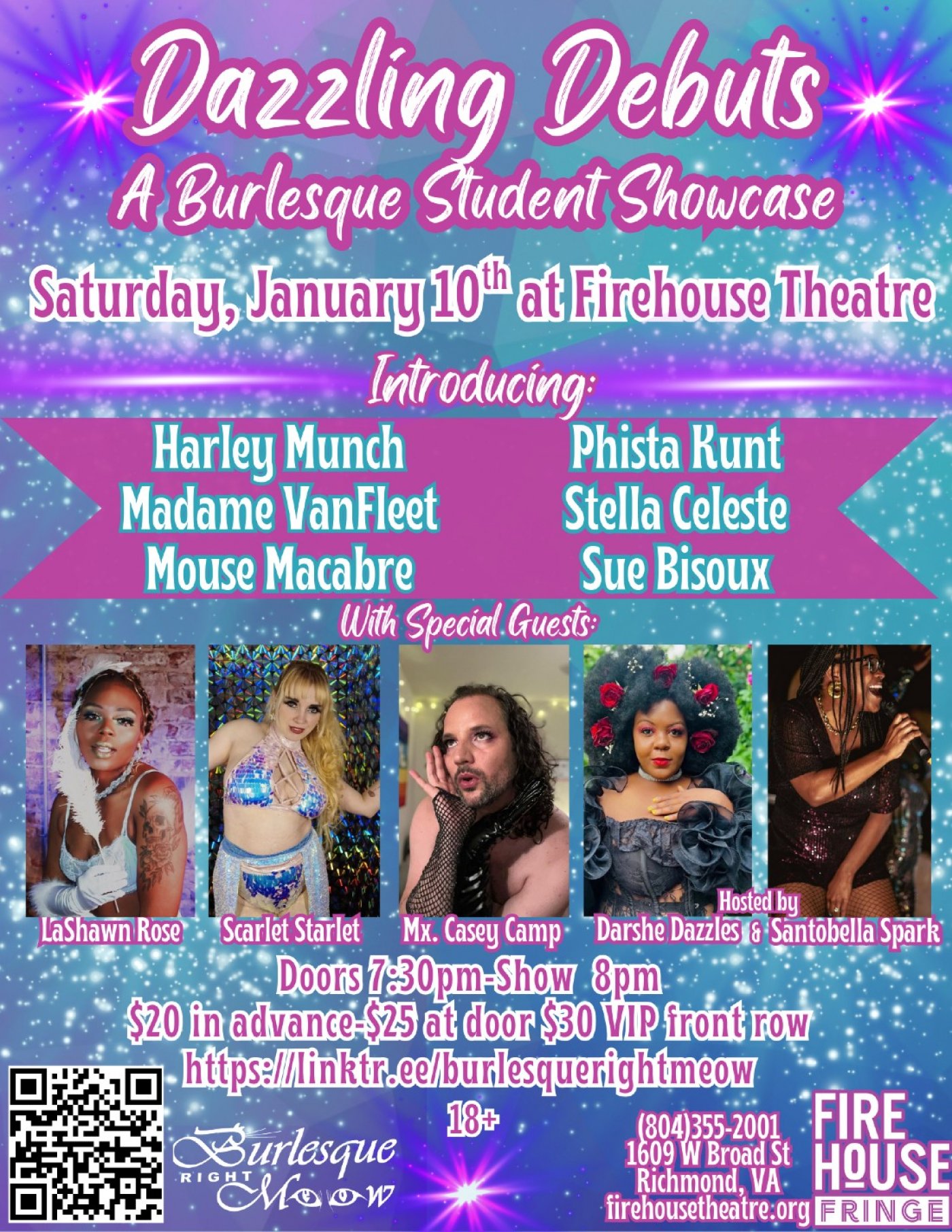 It’s time to celebrate brand-new sparkle on the stage! After weeks of learning, laughing, and leveling up their shimmy skills, the newest graduates of Scarlet Starlet’s Burlesque Foundations class are ready to make their official debut at Firehouse Theatre. You’ll catch them dazzling in a group routine and revealing original solo acts that they imagined, crafted, and brought to life. Let’s pack the room with warmth and applause as these performers step onto the stage for the very first time and discover their shine!