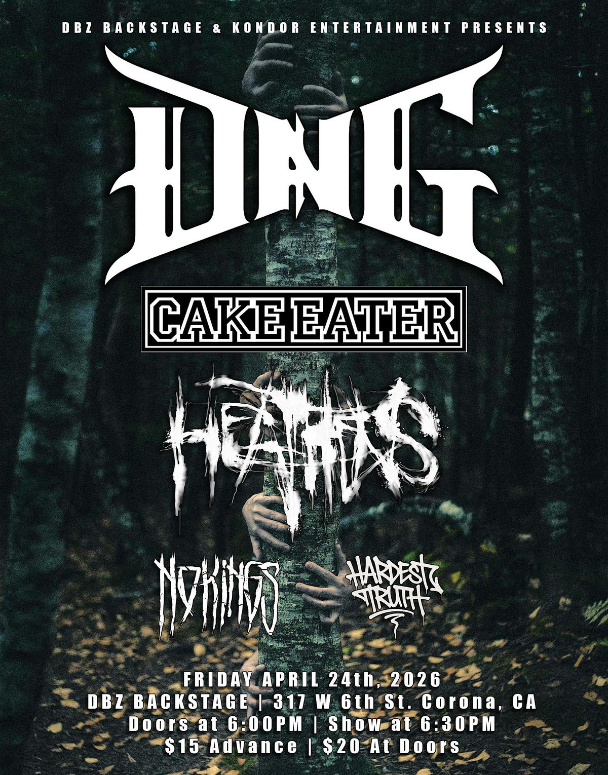 DBZ Backstage & Kondor Ent. Presents DNG, Cake Eater, Heathens, No Kings, and Hardest Truth! Doors @ 6:00 PM! Bands @ 6:30PM!