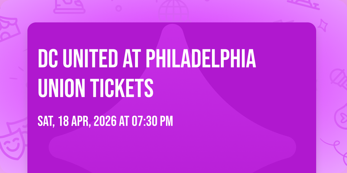 DC United at Philadelphia Union🎉 Welcome to DC United at Philadelphia Union Tickets, where the impossible becomes possible and dreams take flight! 🏛️ Join us at Subaru Park in the heart of Chester, NY for an event that will redefine your expectations. 📅 On April 18th, 2026 at 07:30 PM, witness the transformation of space and time into something truly magical. ✨ It's a curated experience combining the best of innovation, entertainment, and community spirit, creating moments that will be remembered for years to come. Whether you're a first-time visitor or a seasoned enthusiast, prepare to be amazed. 🎟️ Secure your spot with tickets at 21.89 EUR. 🎊 Book now to ensure your place in this unforgettable experience!