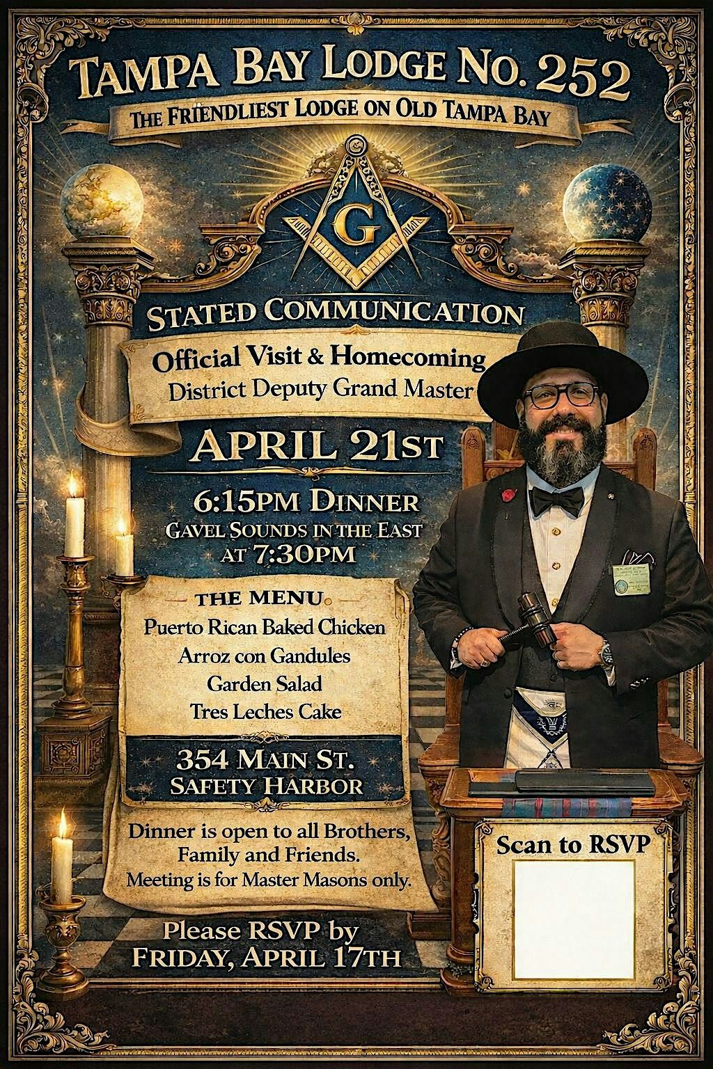 We are honored to host the Official Visit and Homecoming of our District Deputy Grand Master Right Worshipful Rusty B. Valle.