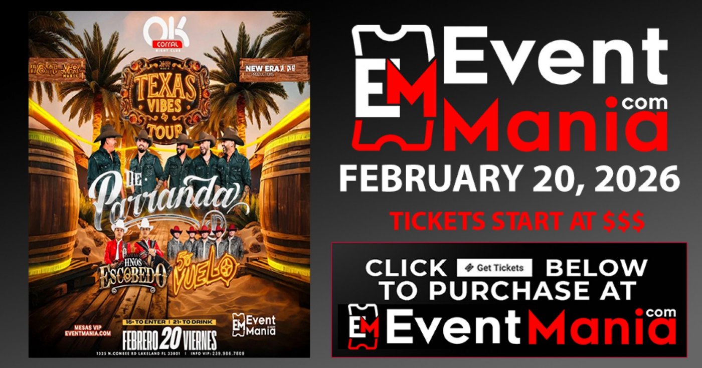 Compra tus boletos aqui: https://eventmania.com/events/de-parranda-ok-corral-lakeland-fl-2026-02-20/xXa3/seat