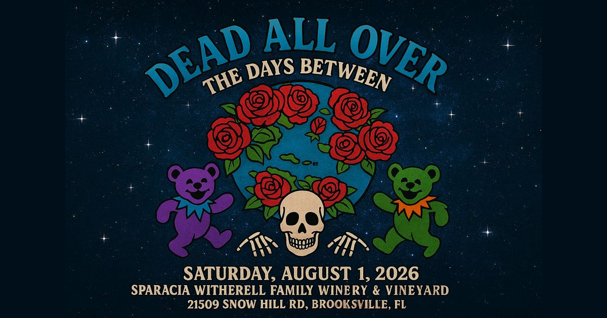 On August 1st, Dead All Over kicks off The Days Between at Sparacia Witherell Family Winery & Vineyard in Brooksville, FL — a ridge-top haven where the sunsets glow like Scarlet and the breeze carries notes that wander like a long, strange melody.