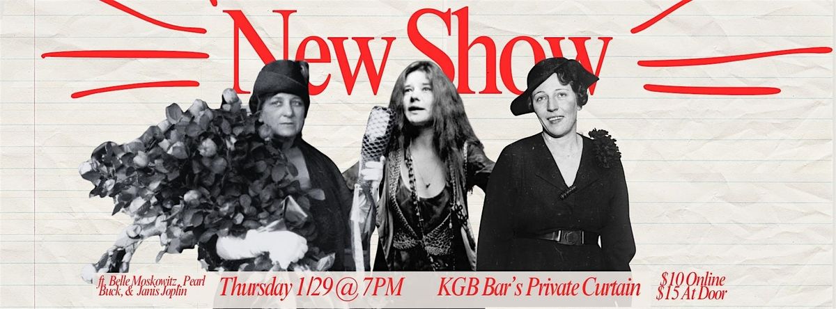 On Thursday, January 29, the Dead Ladies Show NYC brings you three women who feel uncannily relevant right now. We'll meet Belle Moskowitz, a political operator who ran New York from the shadows and did it well; Pearl S. Buck, a writer who lived between cultures and thought seriously about power, responsibility, and belonging; and Janis Joplin, a rocker who turned frustration into music that still holds up. Come for the history. Stay for the bar. Leave with at least one new fun fact you can deploy at dinner parties.
