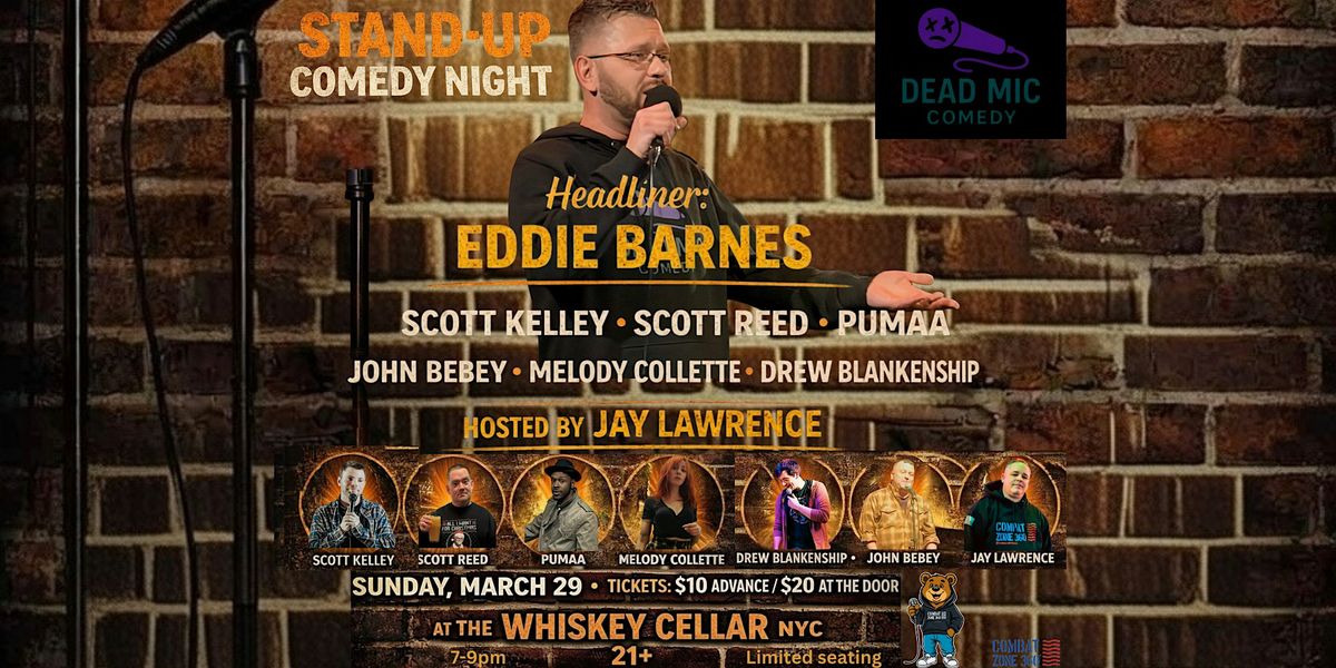 Dead Mic Comedy brings a no-nonsense stand-up comedy show to The Whiskey Cellar NYC, featuring a strong lineup of experienced comics and a headline set from Eddie Barnes.