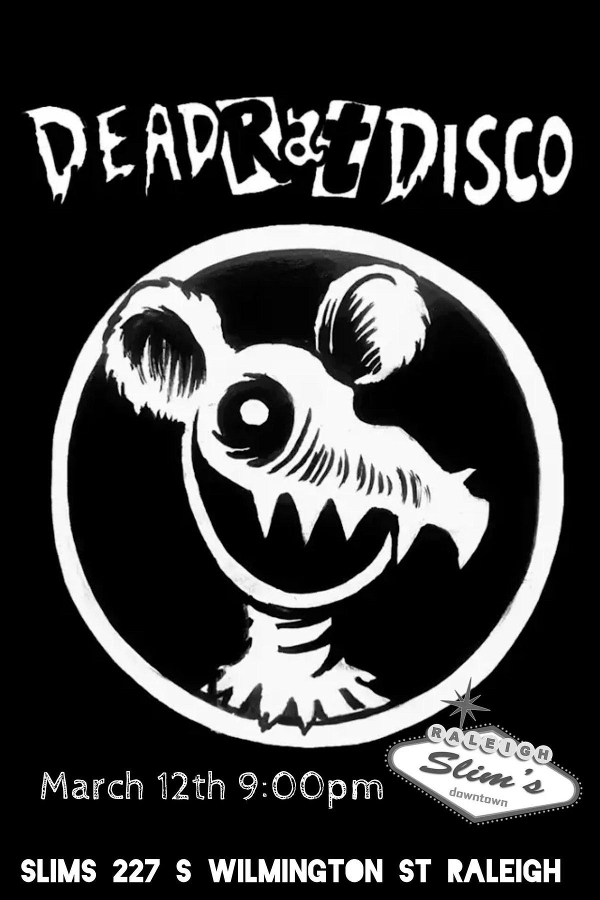 Dead Rat Disco is playing at Slim’s on March 12th from 9-11pm! This NC punk band represents 100 years of punk rock experience. They are known for their high energy live shows. Chaotic vocals and bumping riffs.