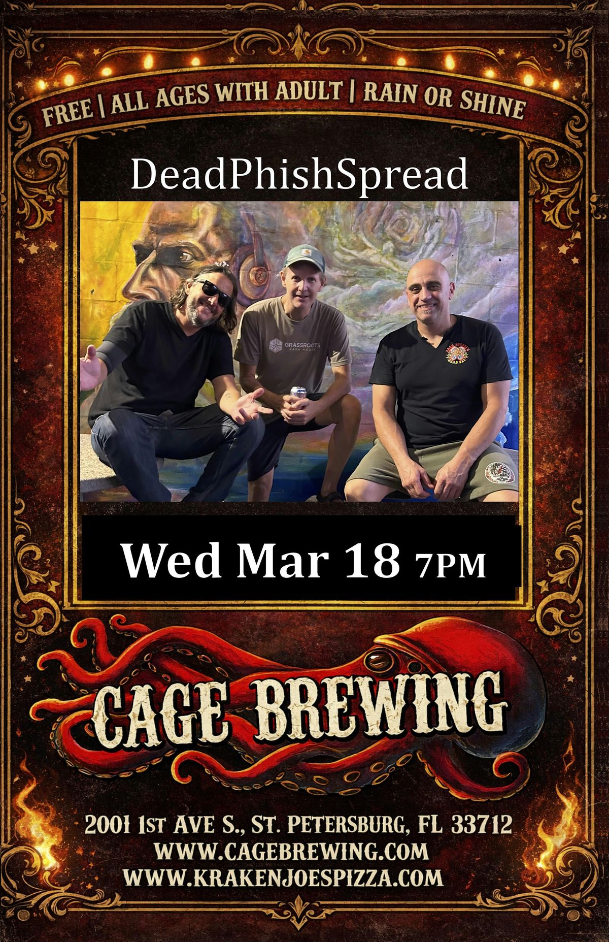 Get ready for an epic night with DeadPhishSpread and special guests from Morning Dew, Antelope, and Dead Set Florida! This is an in-person event you don’t wanna miss — jam out and soak in the vibes with fellow fans. Bring your crew and let's make some memories!