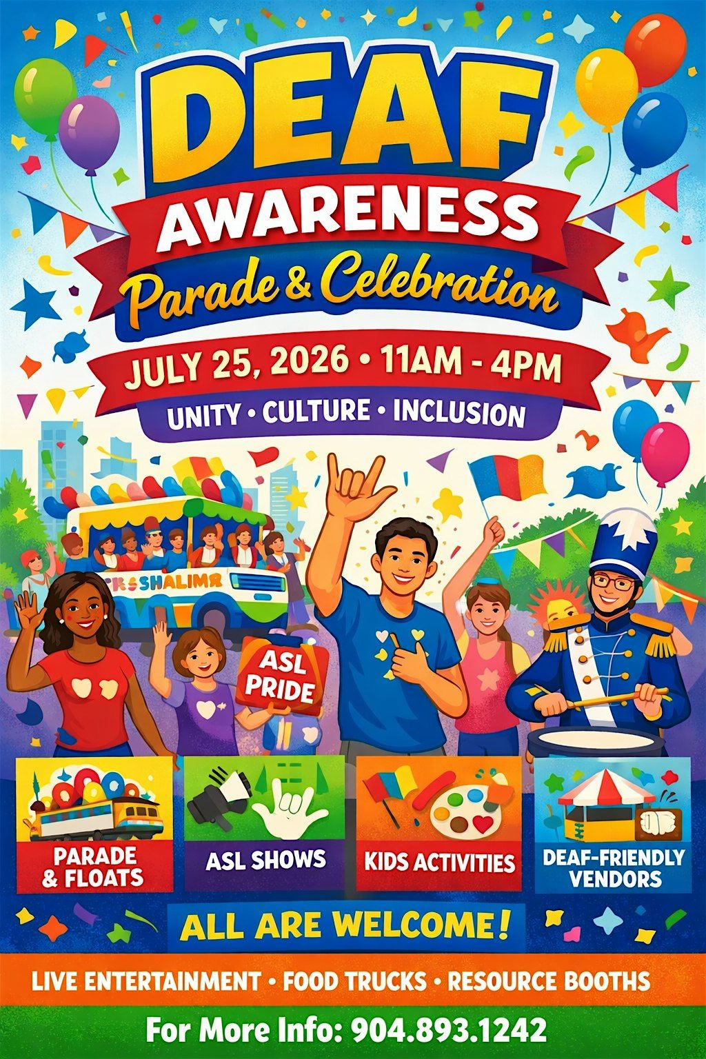 Following the parade, the Deaf Awareness Celebration continues with an exciting lineup of live entertainment, interactive activities, and community engagement for all ages! Enjoy performances, vendor booths, games, and inspiring moments that highlight Deaf culture and promote unity. It’s a time to connect, celebrate, and embrace a truly inclusive experience where communication goes beyond words and community takes center stage.