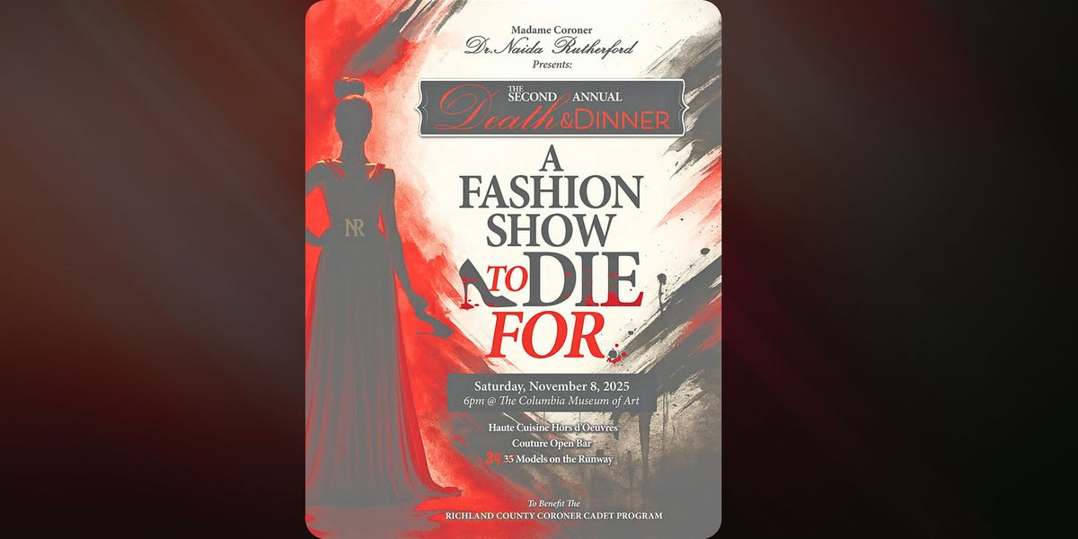 Welcome to the Second Annual Death & Dinner: A Fashion Show to Die For—a spine-chilling evening where real forensic science, M**der investigation intrigue, and Columbia’s hottest fashion houses collide in a jaw-dropping, immersive night of glam and grit.