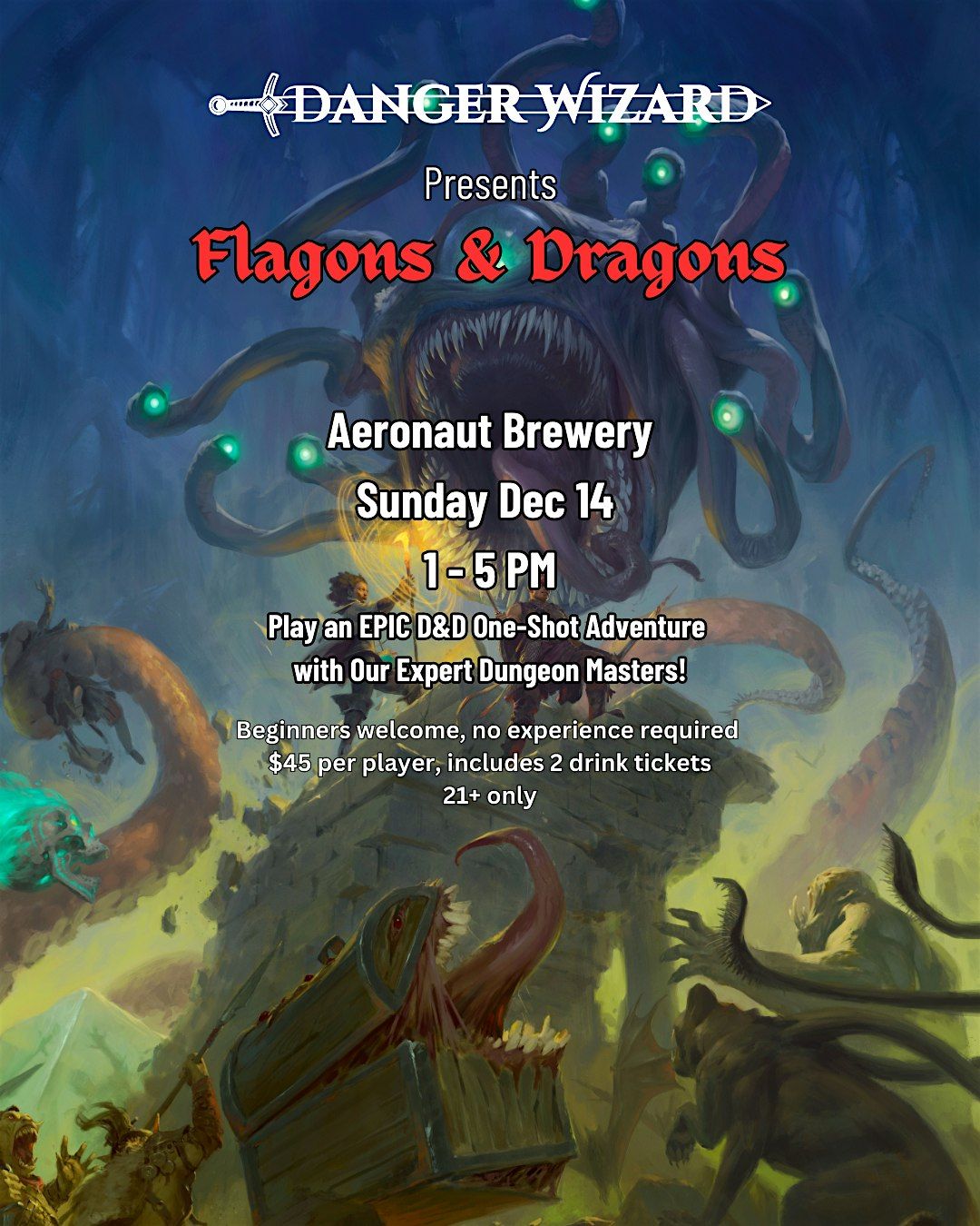 Join the excitement and play Dungeons & Dragons at Aeronaut Brewery in Somerville with Danger Wizard on Sunday, December14th at 1:00 pm!