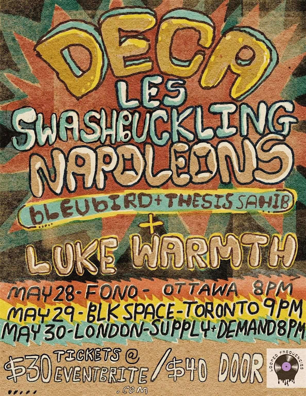 Deca returns to Ontario w/ Les Swashbuckling Napoleons & Luke Warmth—intimate, rare, energetic. Ottawa, Toronto, London. Don’t miss it.