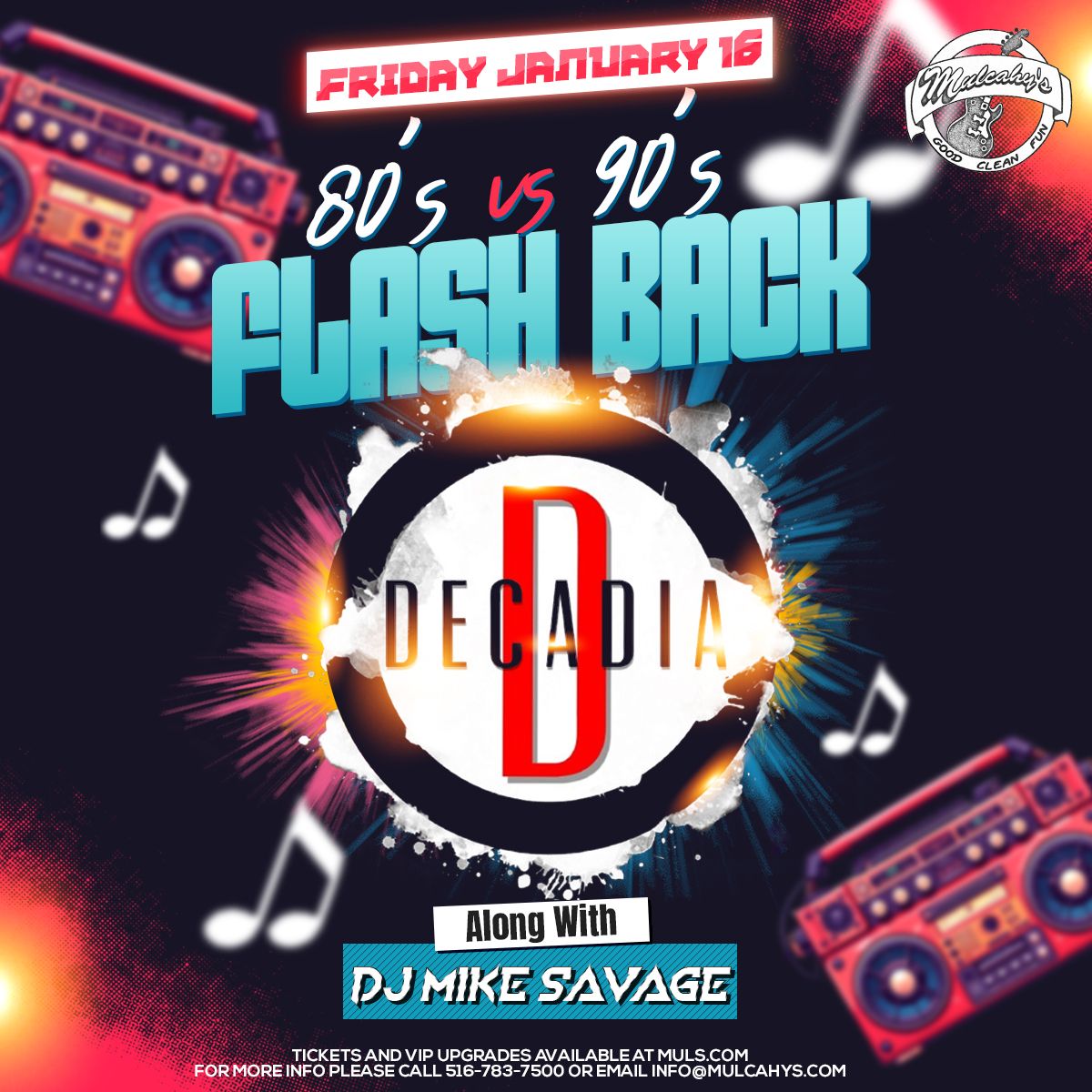 🎉 Prepare to be amazed at Decadia & DJ Savage - 80s vs. 90s Night, the most anticipated gathering of the season! 🌟 Set against the stunning backdrop of Mulcahys in vibrant Wantagh, NY, this event promises to redefine your expectations. 📅 Mark your calendars for March 12th, 2026 at 07:00 PM and get ready to immerse yourself in an atmosphere of wonder and excitement. ✨ From the moment you arrive, you'll be transported into a world where memories are made and stories come alive. They have crafted an experience that perfectly harmonizes entertainment, innovation, and community spirit. 🌈 Join us as we create moments that will be discussed for years!http://maps.seatics.com/GeneralAdmissionEvent_2019-01-14_1230_SVGC_tn.gif