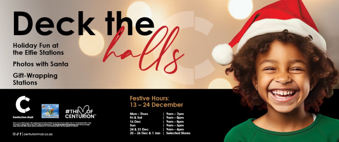 Centurion – 6 December 2024 – Celebrate the holidays in style at Centurion Mall your ultimate festive season destination. From extended shopping hours to heartwarming family activities Centurion Mall offers something for everyone this holiday season.