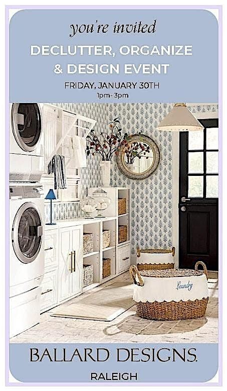 This engaging event will help you garner ideas and suggestions on how you can stay organized with Ballard products, furnishings, accessories & décor options.
