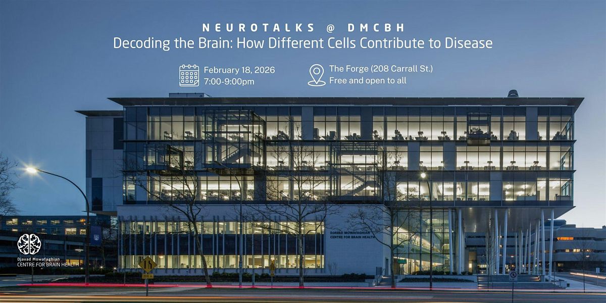 The event is co-organized by the Djavad Mowafaghian Centre for Brain Health and the Neuroscience Trainee Association, and will have a relaxed, after-hours atmosphere. Limited appetizers will be provided, and drinks will be available for purchase.