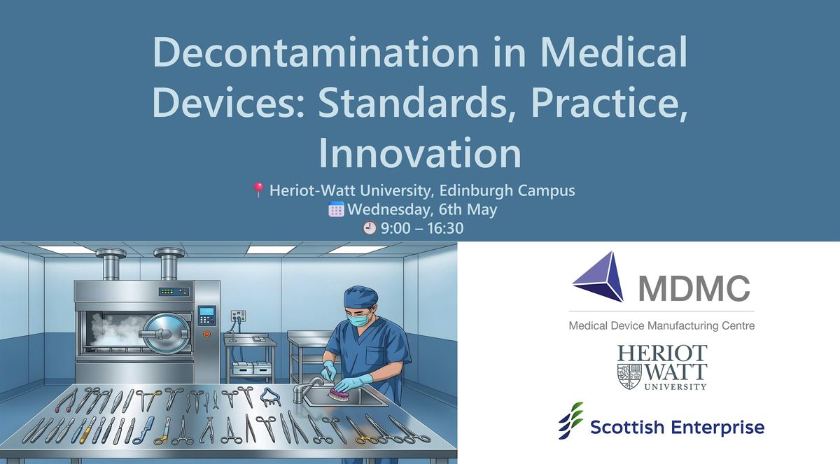 The MDMC is pleased to invite you to attend our in-person workshop on medical device decontamination, taking place on Wednesday 6th May 2026 at Heriot-Watt University.