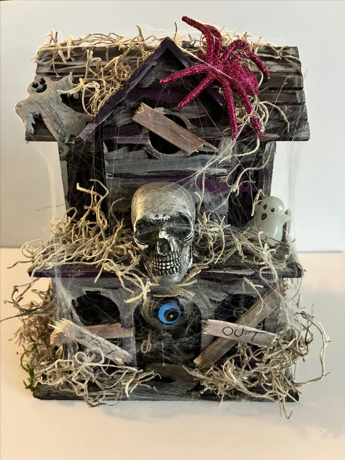 - A pre-painted black wooden haunted house (sizes approx. 16cm x 13cm x 17.5cm)